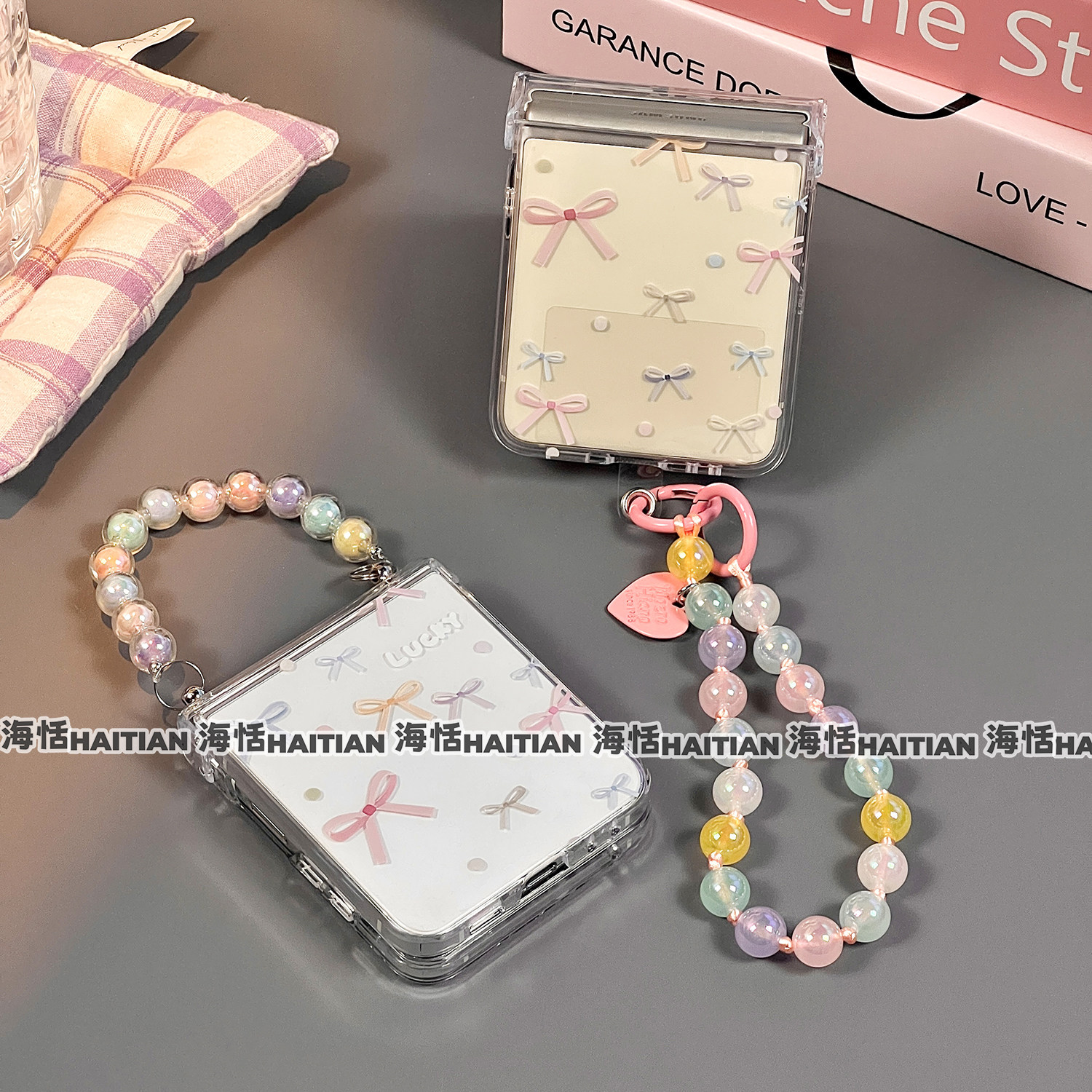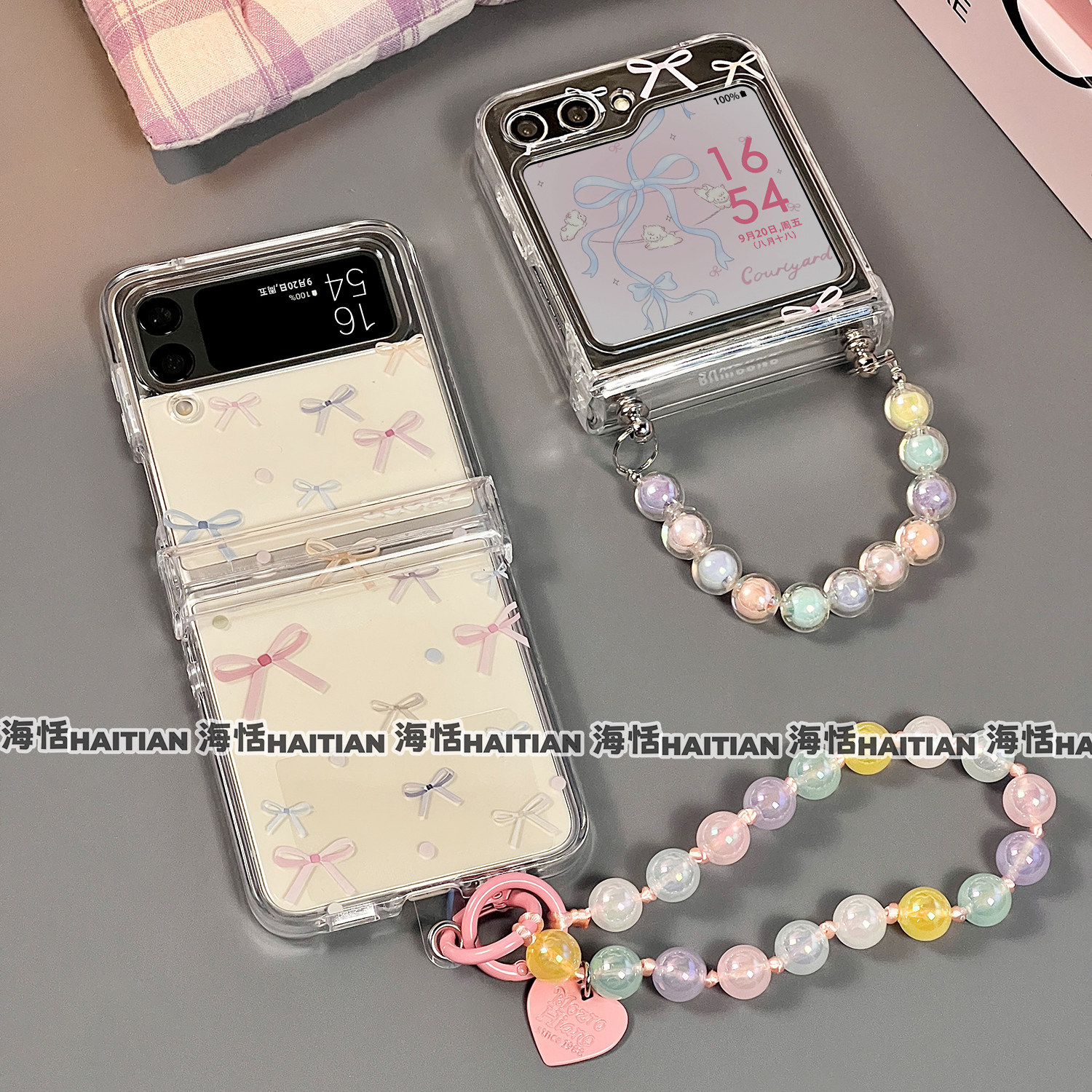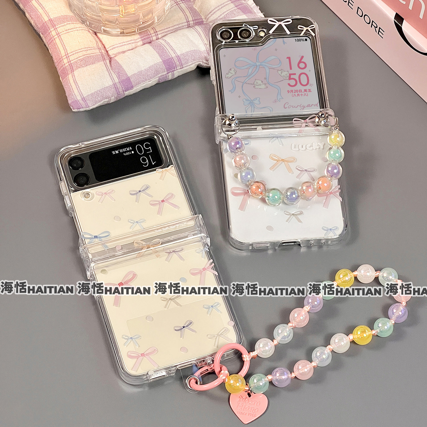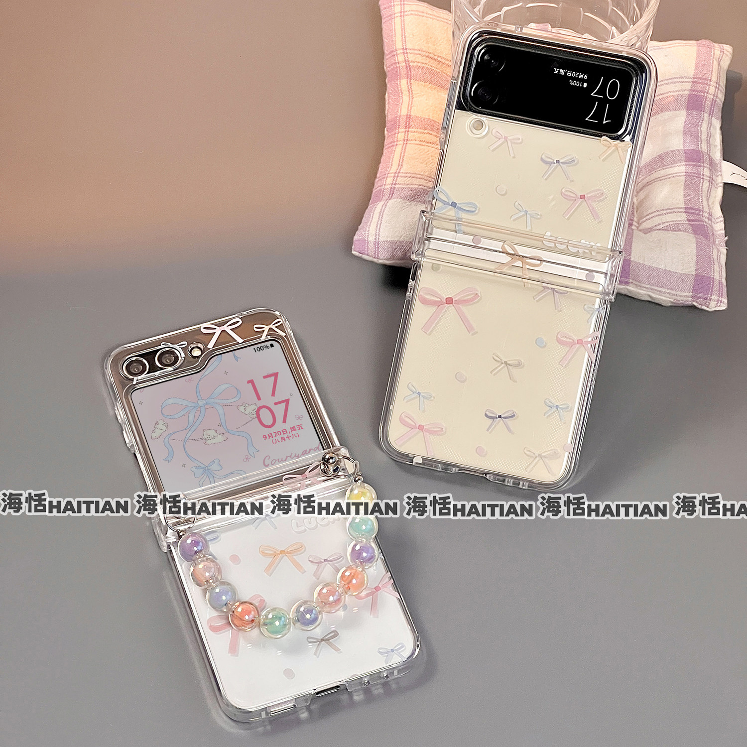 海恬 ins风彩色蝴蝶结适用zflip7fe三星zflip6折叠屏手机壳zflip5新款zflip4包铰链zflip3保护套透明手链小众