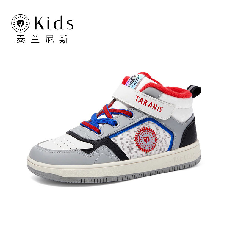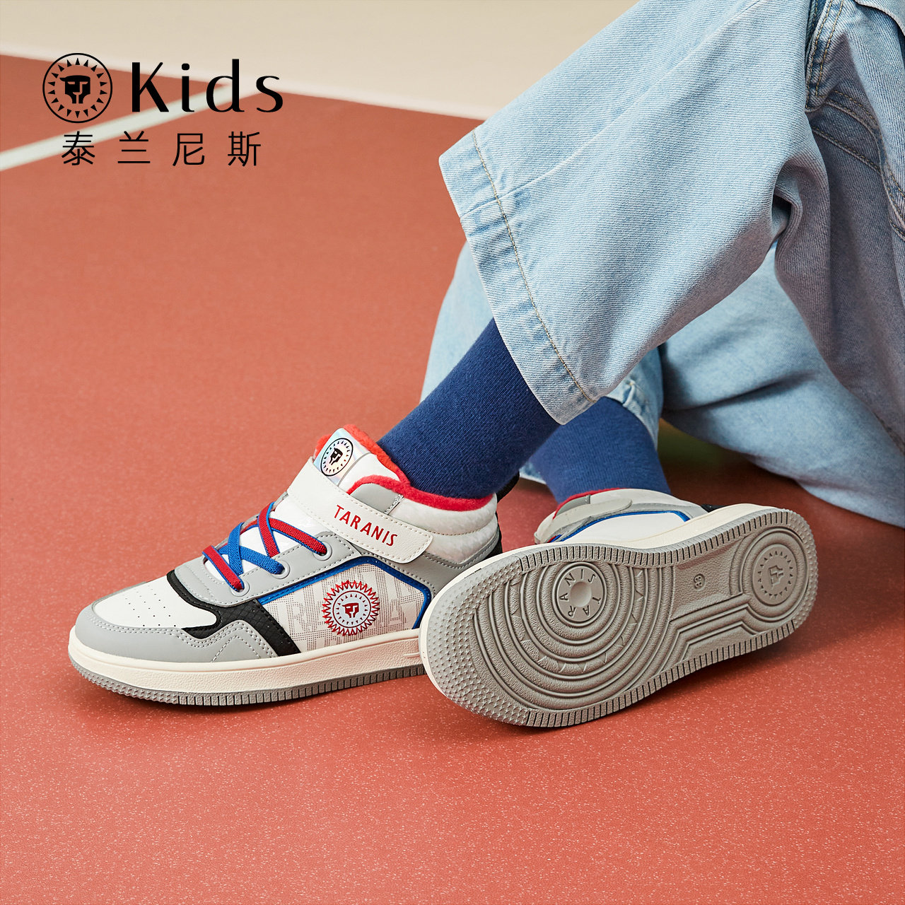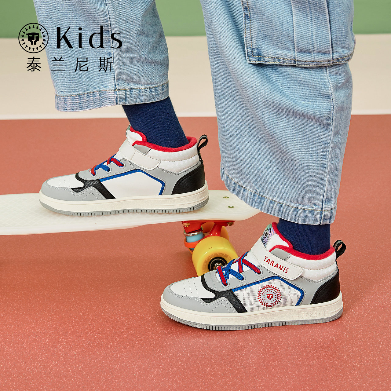 泰兰尼斯kids男童板鞋秋冬款高帮保暖板鞋中大童加绒儿童休闲鞋子