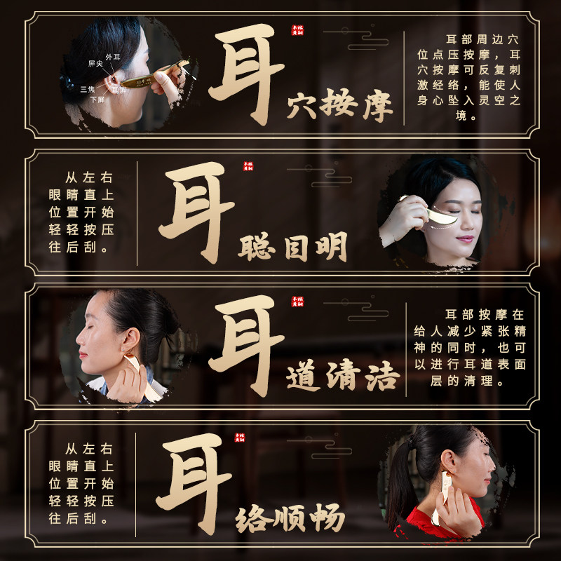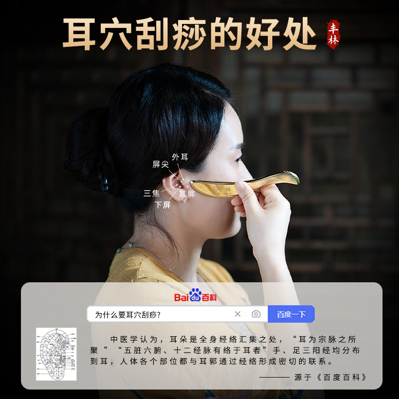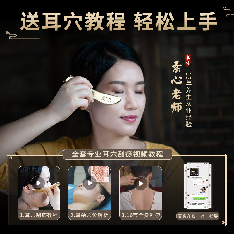 丰林纯黄铜眼部刮的刮痧板专用耳朵脸部女面部刮沙板按摩耳部经络