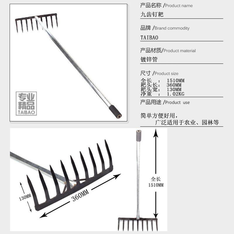 钢丝耙14齿园艺园林工具农具搂草筢子九齿耙子垃圾夹子卫生拾取器
