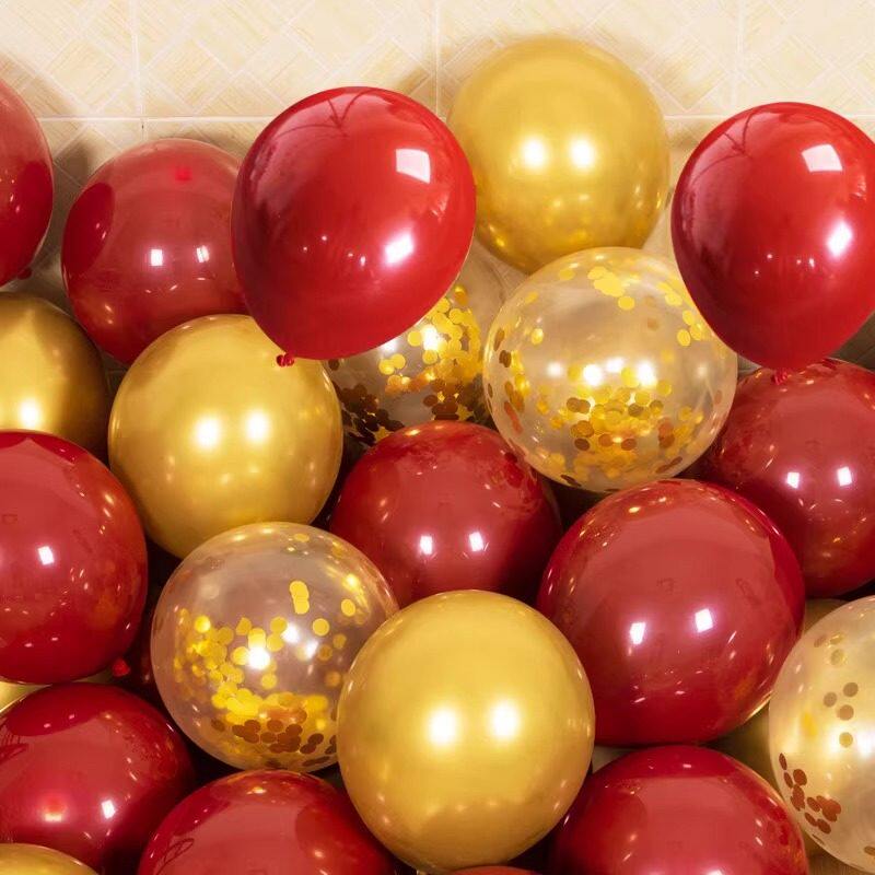 2026新年快乐双层宝石红金色气球过周岁生日结婚氛围装饰场景布置