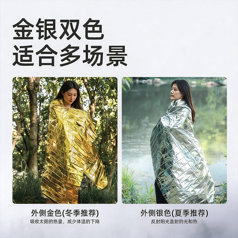 便携式铝箔雨衣野外求生防失温防寒冻户外露营登山应急保温急救毯