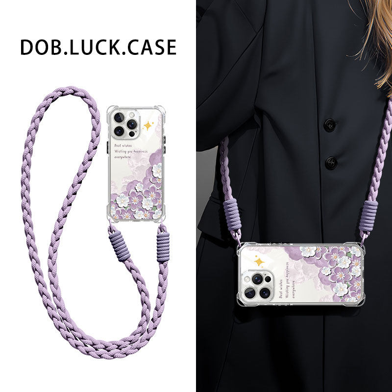 适用于苹果16promax手机壳新款iPhone15油画风14pro斜挎挂绳13透明12软xr高级xs气质女78plus全包防摔保护套