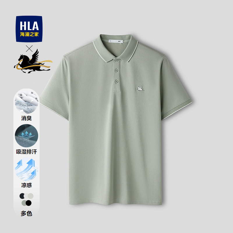 HLA/海澜之家山不在高凉感短袖POLO衫26春夏新大码刺绣翻领T恤男