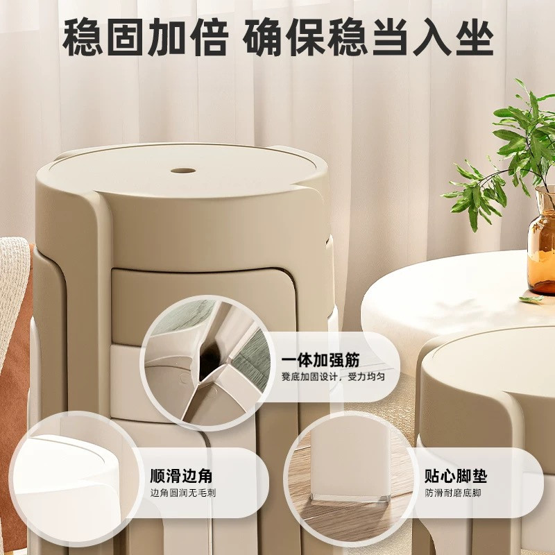 三梦塑料凳子家用加厚可叠放软包圆凳餐桌备用高板凳中古简约椅子