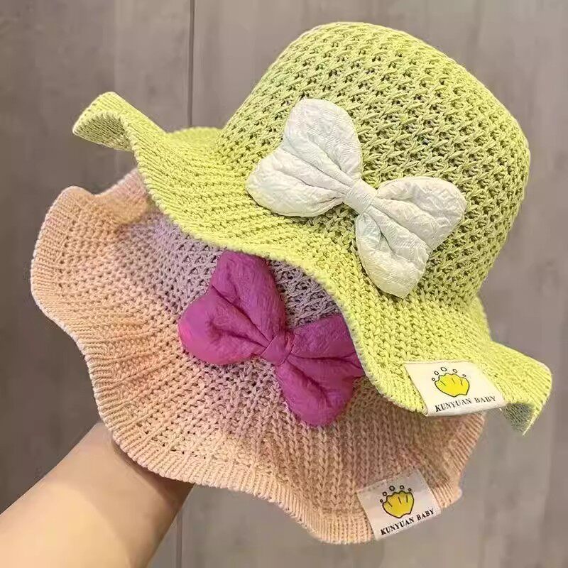 儿童夏季遮阳帽大檐镂空草帽女宝宝春夏透气防晒太阳帽女童沙滩帽