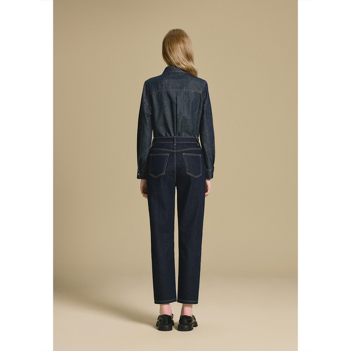 诗篇专选深蓝色锥形显瘦百搭牛仔裤女秋款