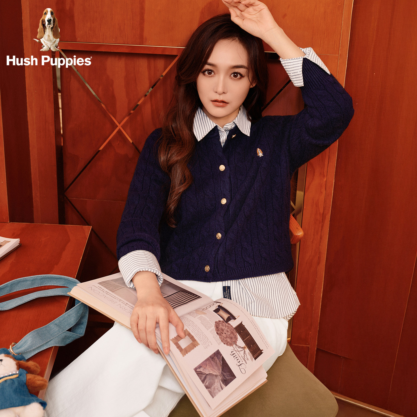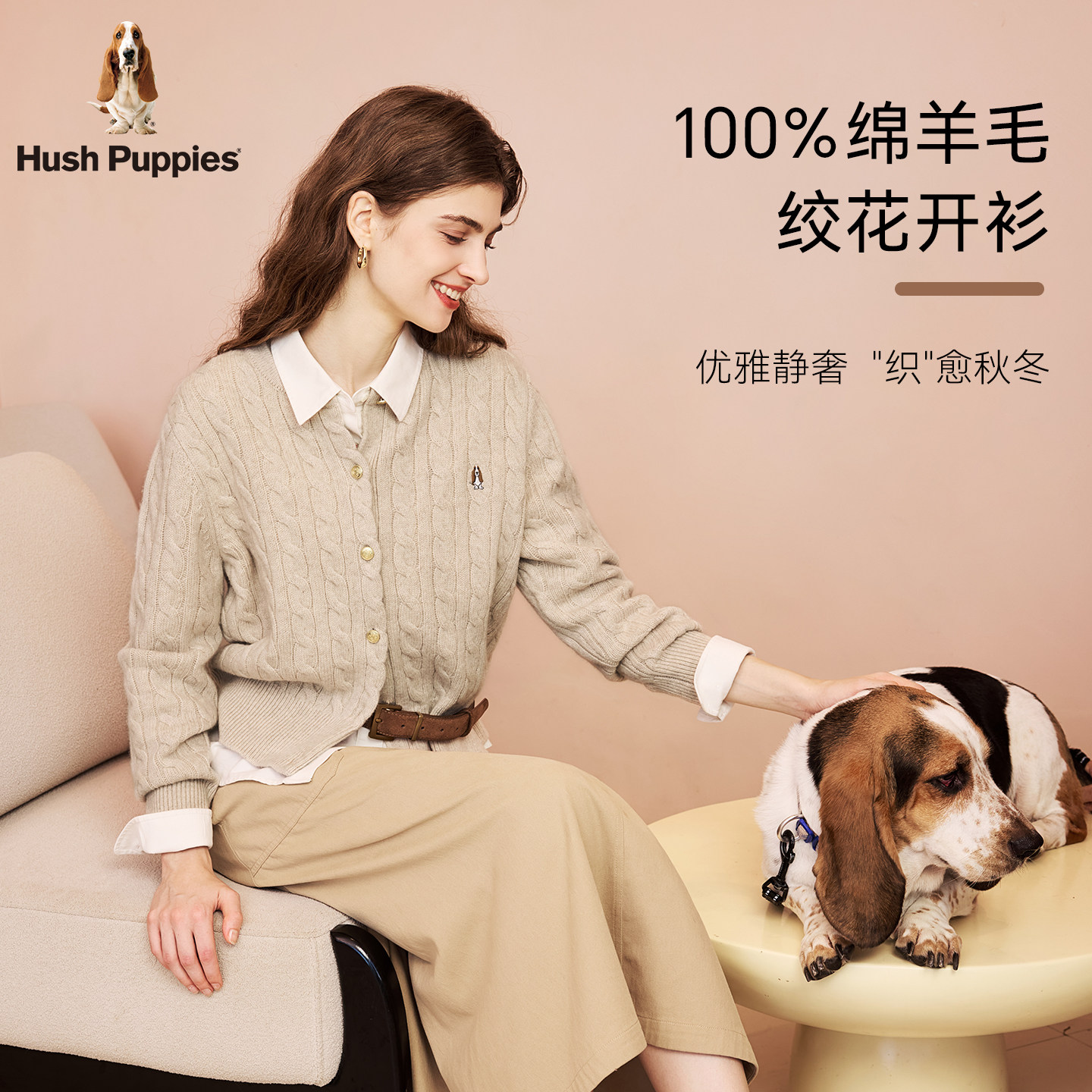 【何泓姗明星同款】暇步士女装2025冬季新款气质绞花羊毛针织开衫