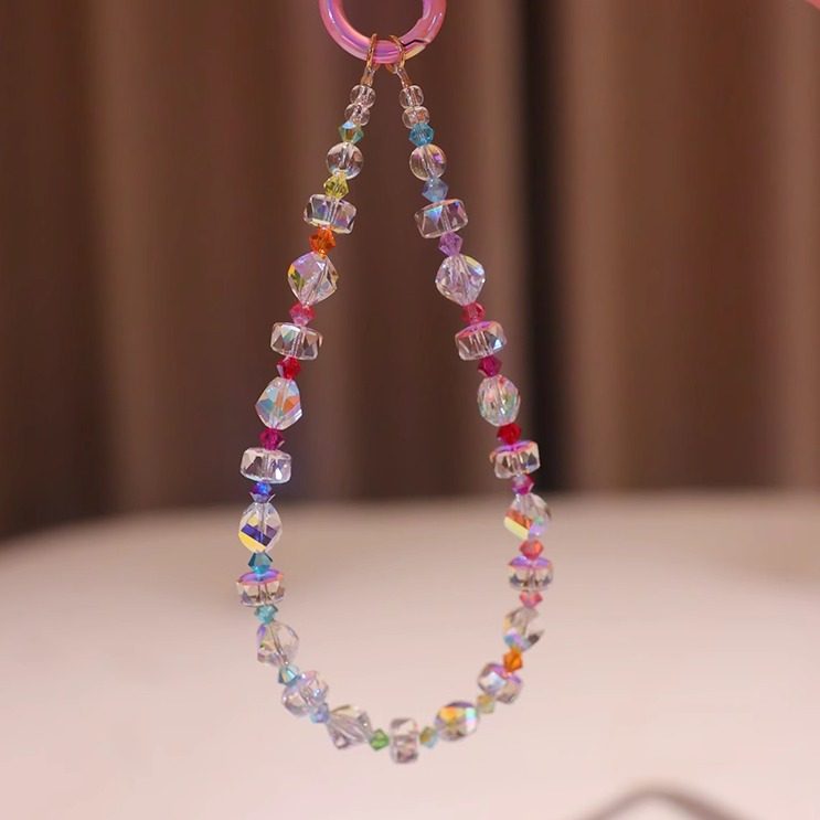 新款施华洛水晶系列清透感彩虹渐变精致ins风时髦挂饰手机链饰品