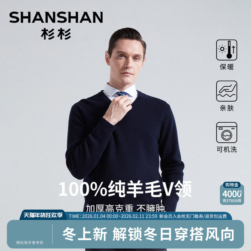 杉杉男士毛衣2025新款秋冬季加厚纯羊毛V领上衣针织衫内搭打底衫