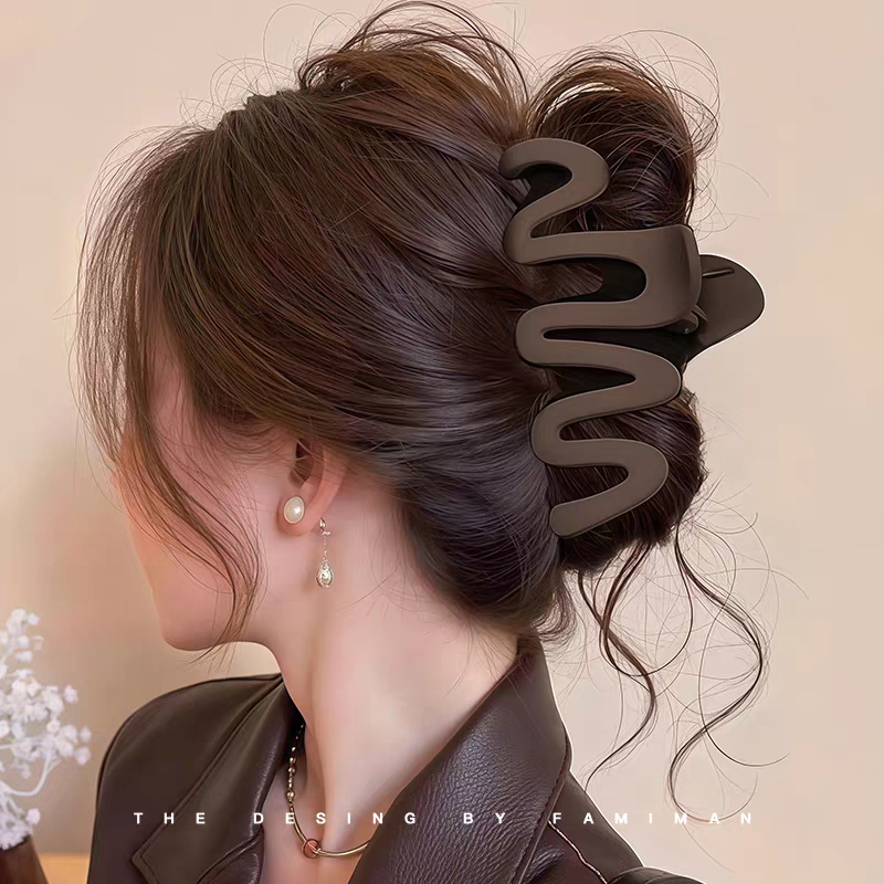 春秋抓夹2026新款发夹发量多大号鲨鱼夹发饰方形波浪蝴蝶结黑色