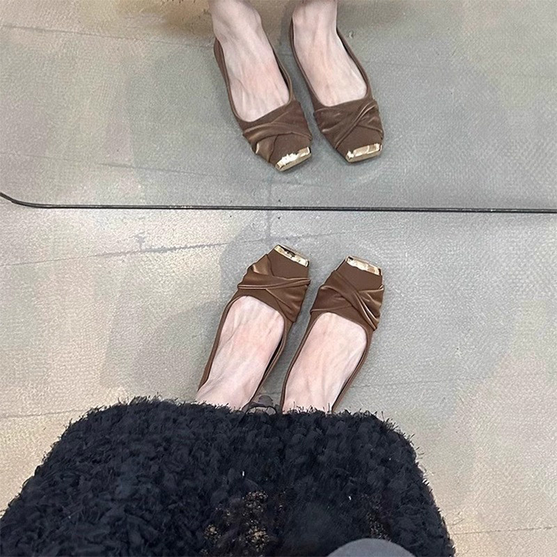 米霏~法式平底芭蕾单鞋女秋冬2025新款软底一脚蹬蛋卷鞋大码女鞋