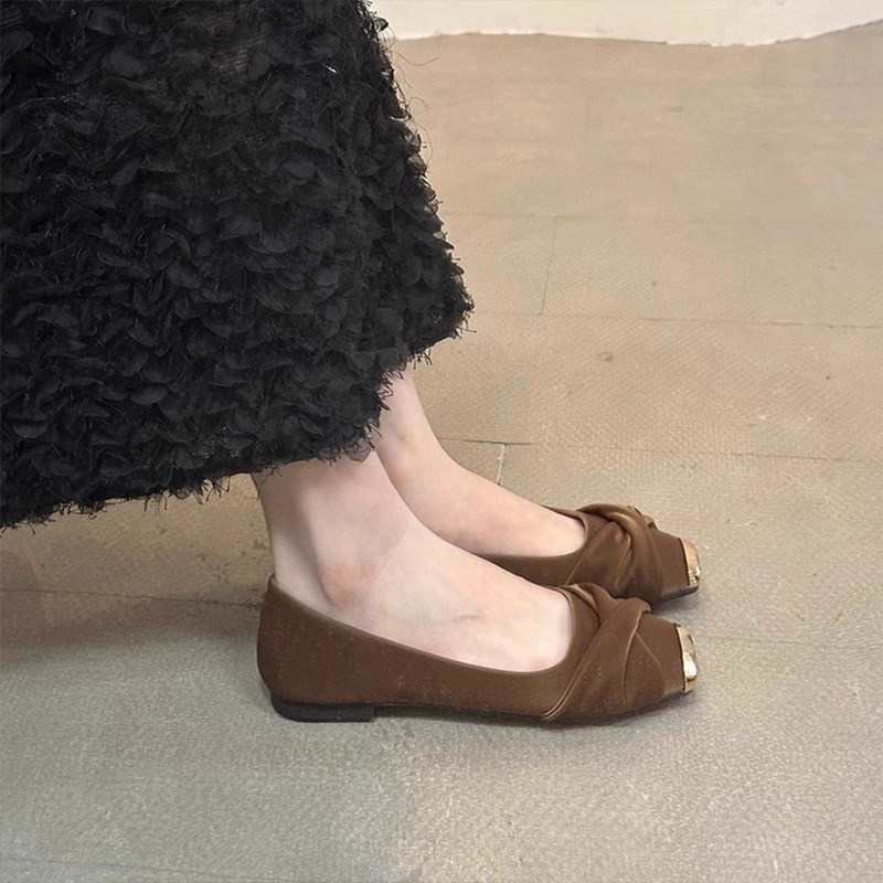 2025年春季新款法式气质配裙子单鞋女浅口仙女风缎面方头平底瓢鞋