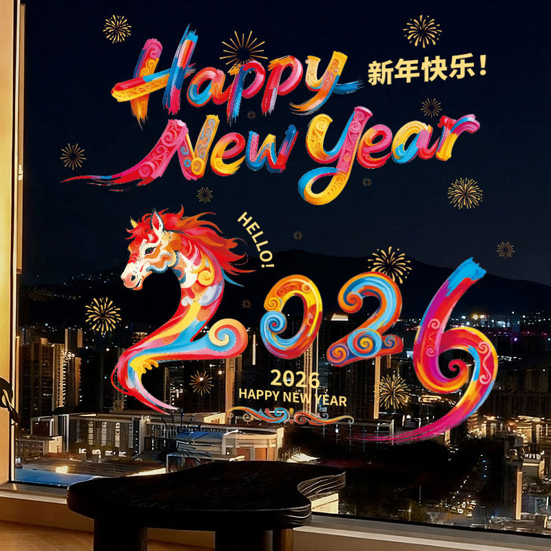 2026马年新年静电贴纸玻璃门窗贴纸春节元旦玻璃贴画窗花福字贴