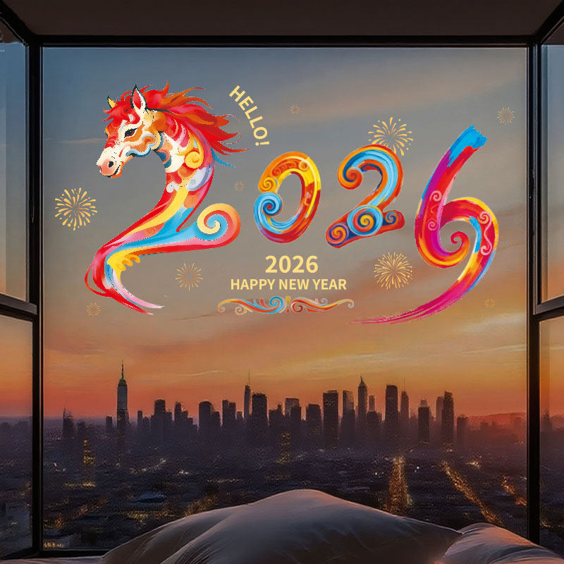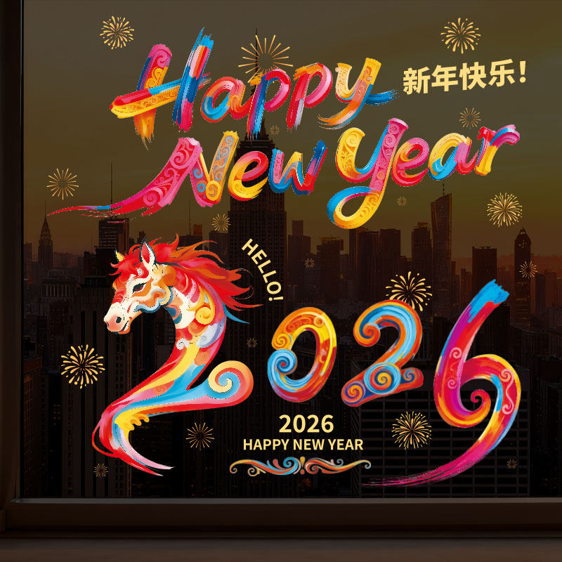 2026新款马年装饰窗花贴画春节过年静电创意玻璃新年贴纸氛围布置