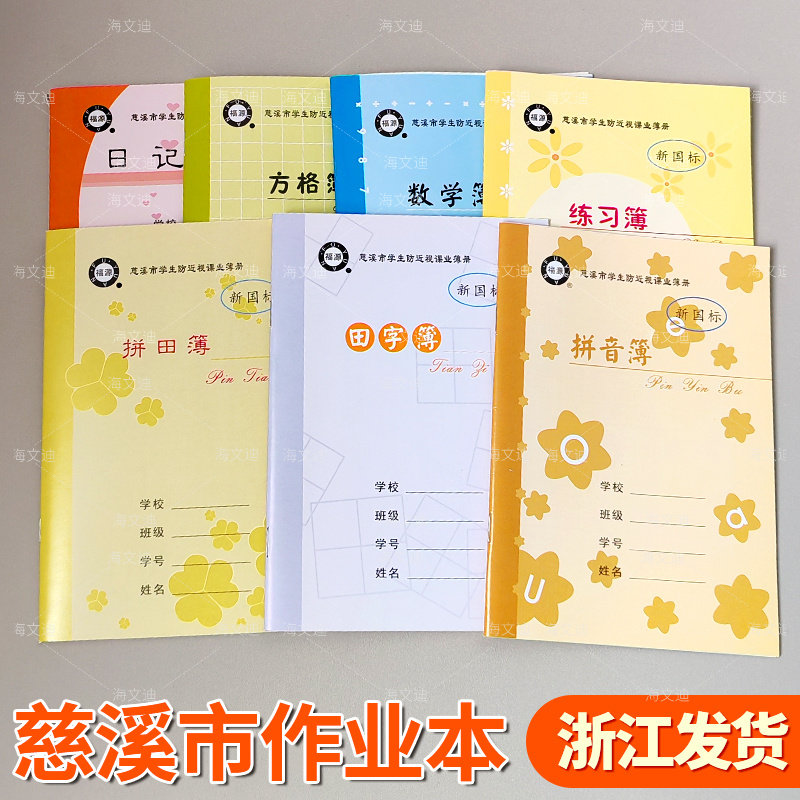 宁波慈溪市学生防近视课业簿册加厚作业本拼音拼田田字格方格簿小数学横线描数练习簿日记外语簿语文大作文簿