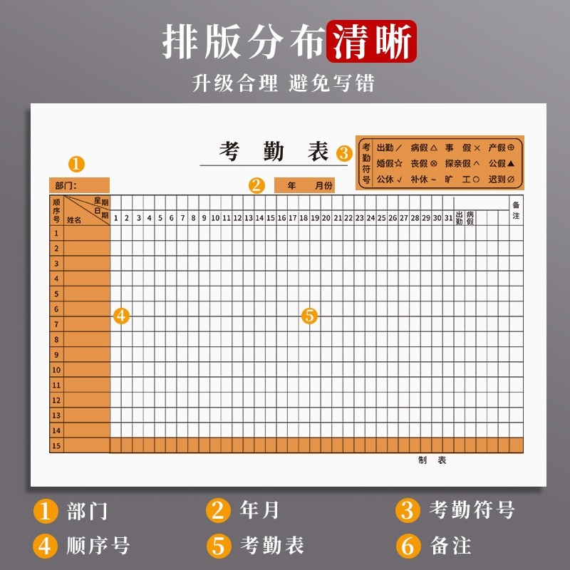 考勤表记工本31天记工薄建筑工人工地考勤临时工出勤登记簿个人签到本上班签到本记录表临时工上下班工时登记
