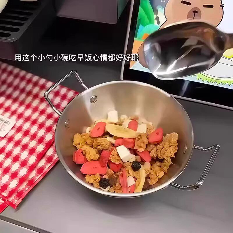 早餐沙拉双耳碗勺子个人家用餐具新款高颜值宿舍不锈钢燕麦泡面碗