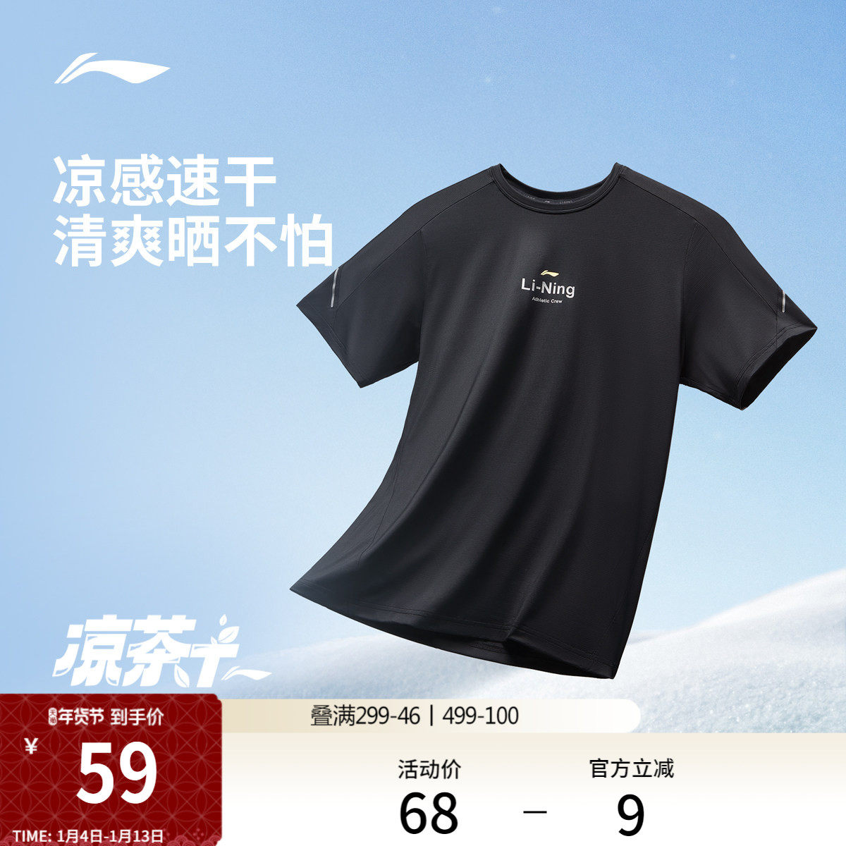 李宁速干短袖T恤男士夏季官方新款圆领健身跑步透气上衣男运动服