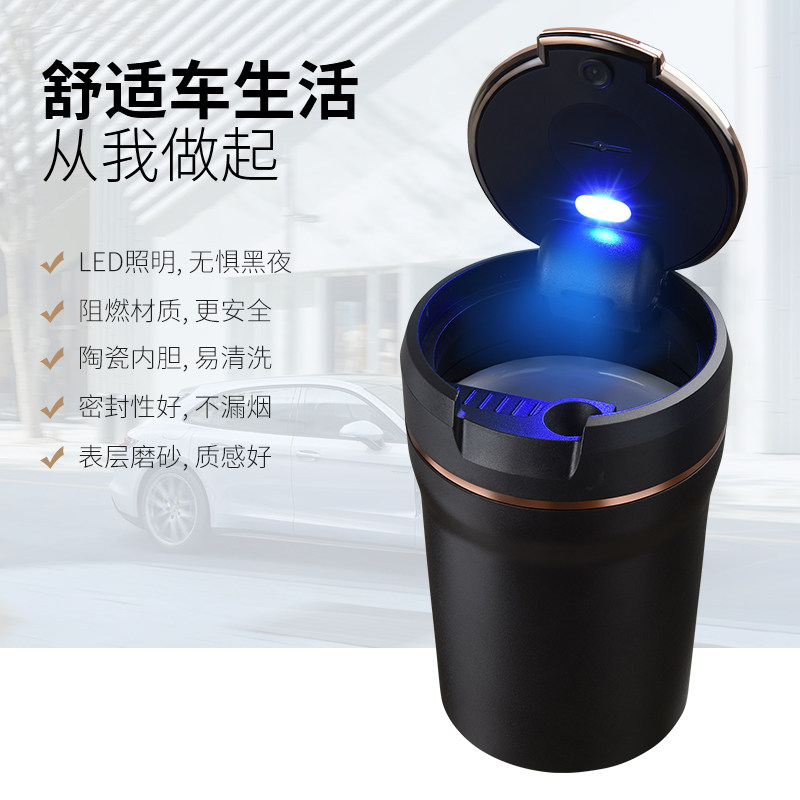 车载烟灰缸汽车高级烟缸神器新款内防个性飞灰车门LED创意防飞
