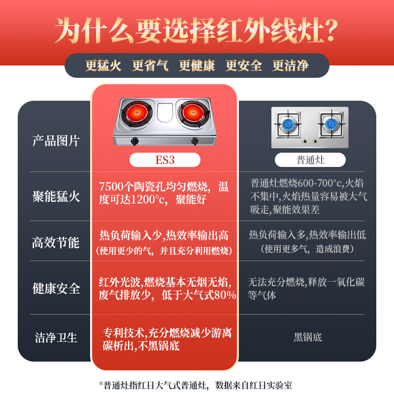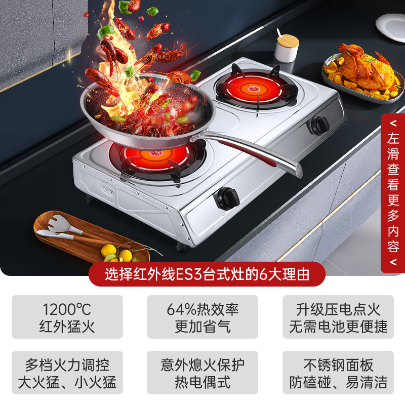 红日红外线煤气灶双灶家用台式天然气液化气灶炉具聚能双灶燃气灶