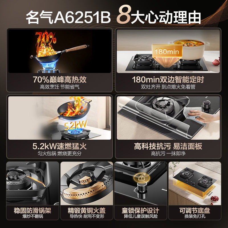【新品】名气定时燃气灶双灶天然气煤气灶台猛火炉老板出品6251B