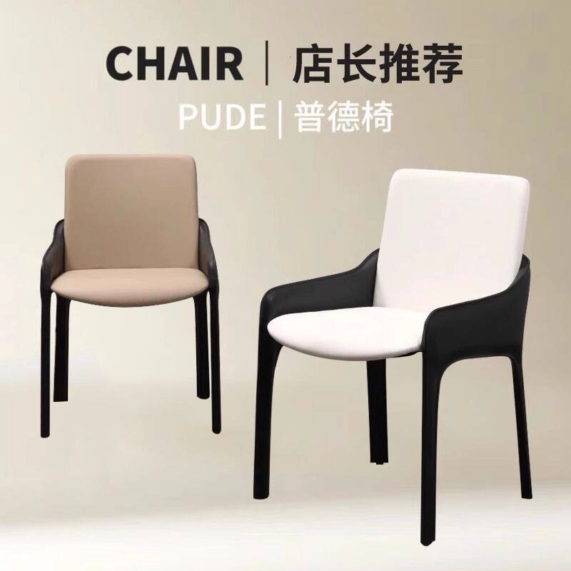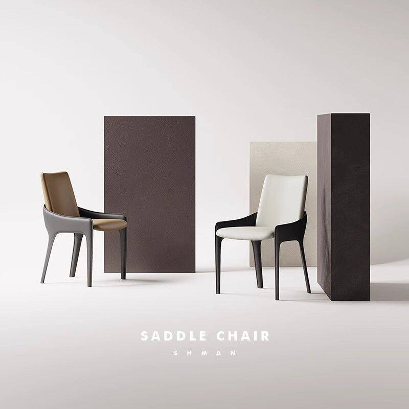 c意式极简马鞍皮餐椅北欧轻奢简约家用酒店餐厅靠背椅中古书房