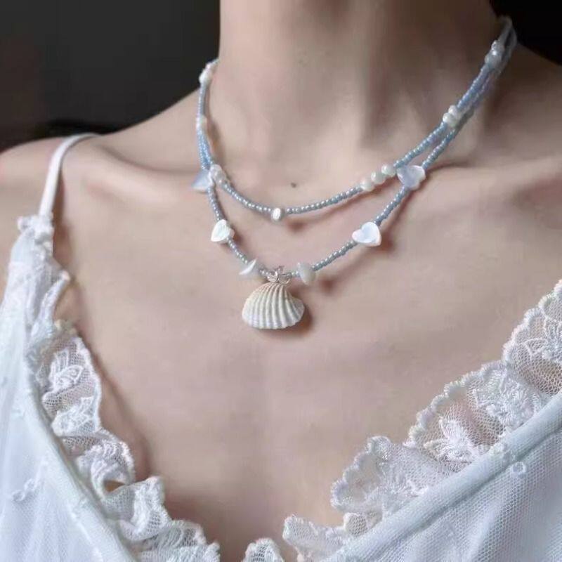“ 拾贝少女”夏日海岛串珠叠戴小众项链女2025新款设计感送礼物
