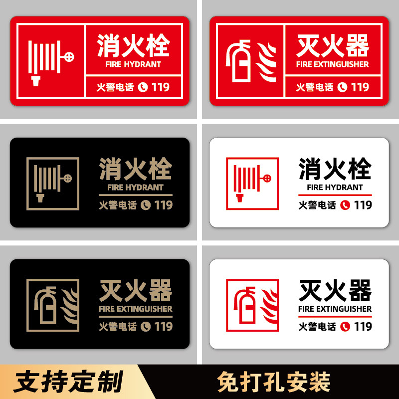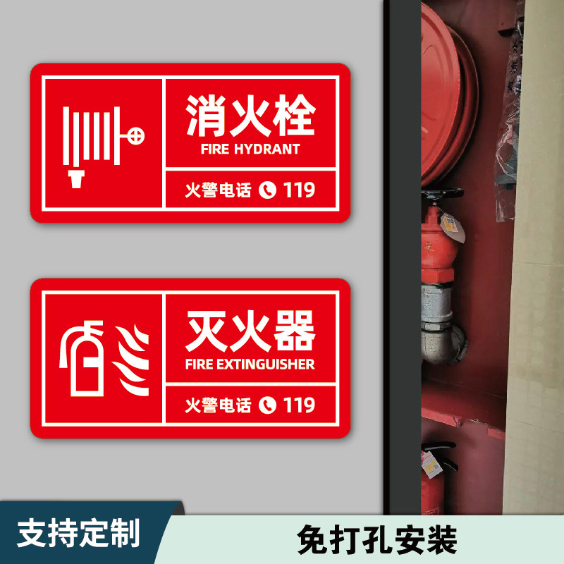 消防栓标识牌标牌亚克力定制酒店消火栓柜门消防箱暗门灭火器提示贴纸安全标语火警电话全套警示指示标志墙贴