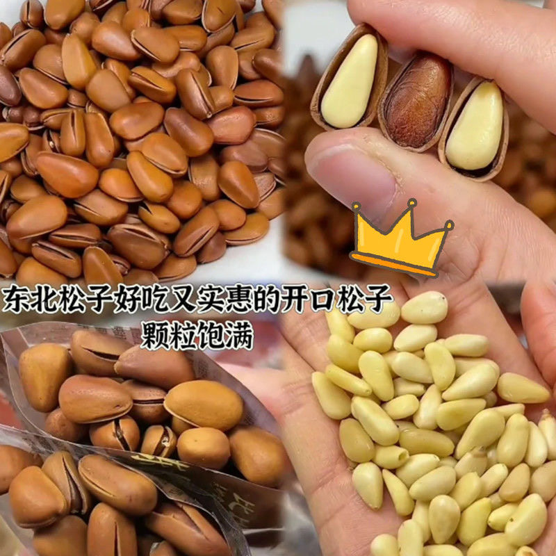 2025东北纯野生开口松子500g新货特大手剥松籽散装大颗粒手拨坚果