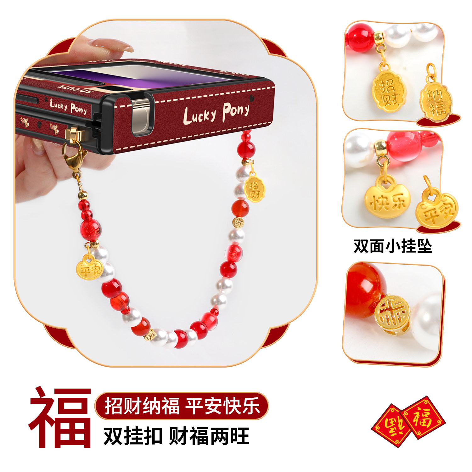 棕格子复古小马适用华为purax手机壳新款pura典藏版x旋转磁吸支架中轴铰链全包带挂绳马年红色本命年手提链条