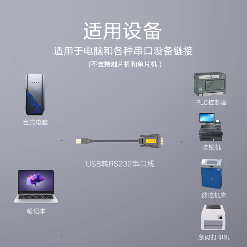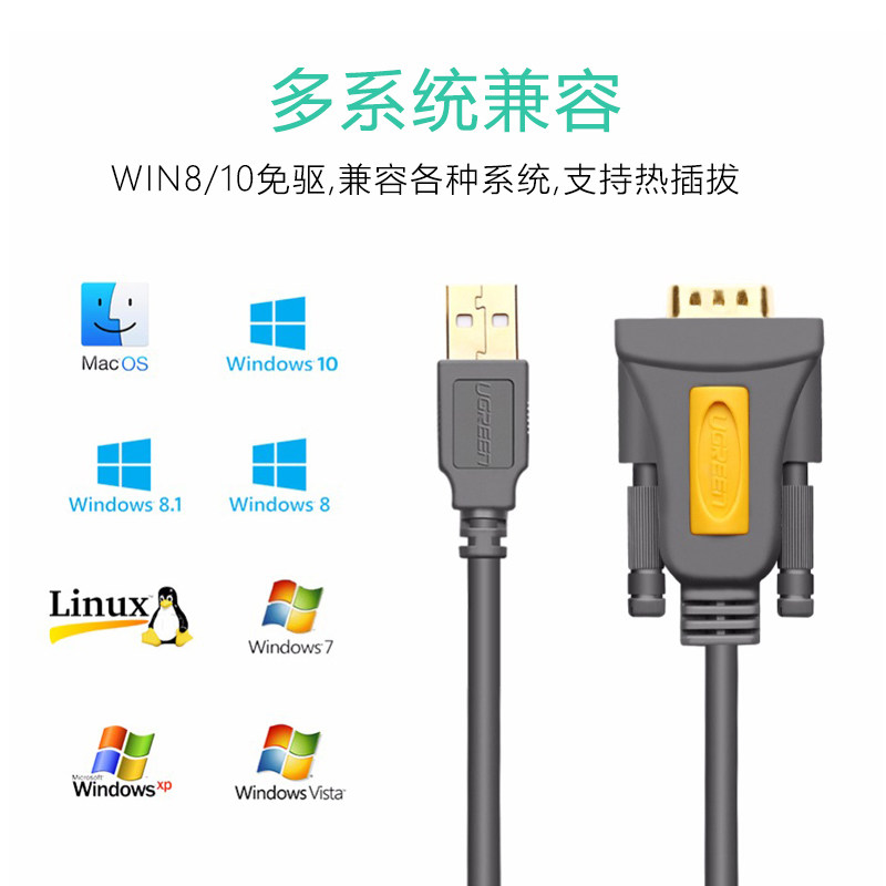 绿联usb转串口线工业级rs232九针com口db9针转换器打印机公对公母