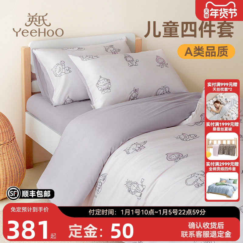 英氏儿童天丝棉四件套床品磨毛水洗被套床上用品件套床单云梦奇境