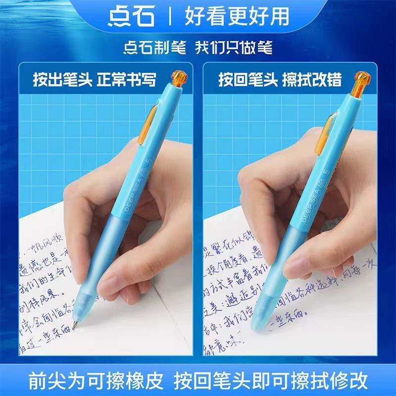 点石制笔0214热敏可擦中性笔静音大容量可换芯0.5晶蓝黑墨蓝书写