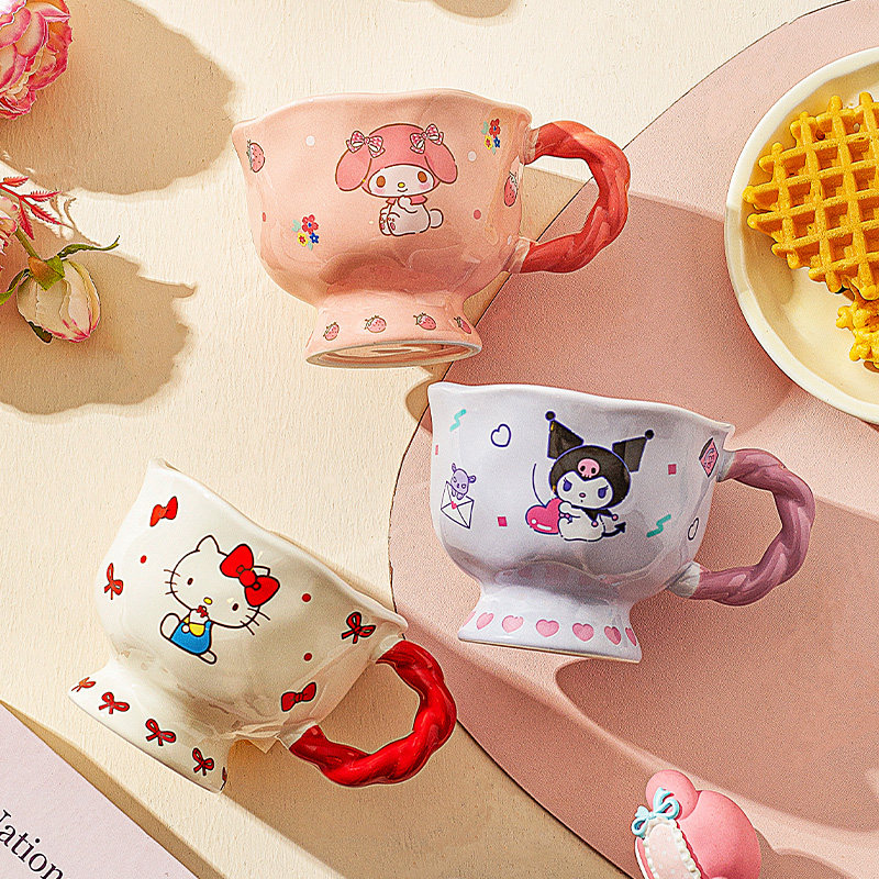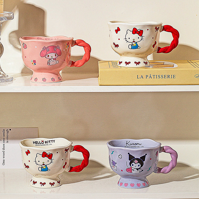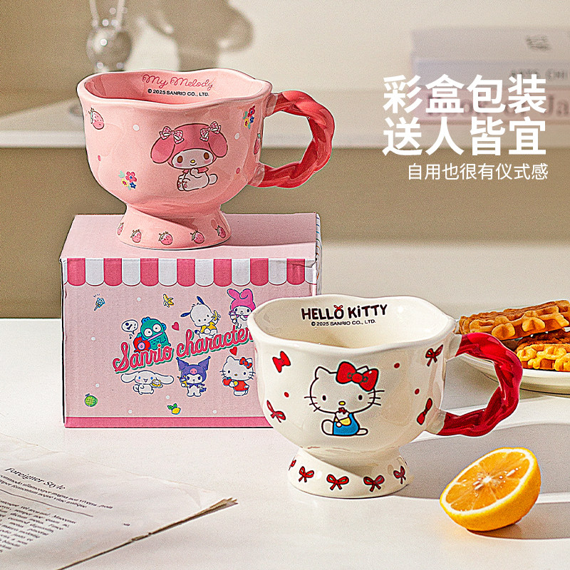 摩登主妇hellokitty杯子高脚马克杯带勺家用水杯早餐杯陶瓷咖啡杯