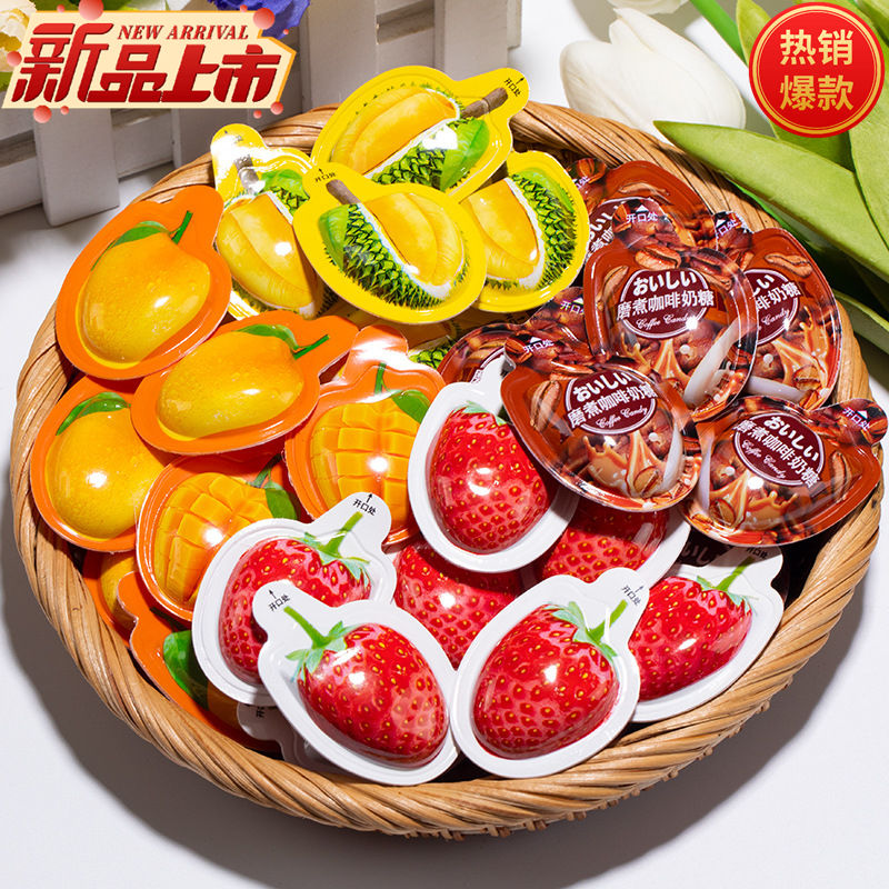 3D综合水果味奶糖真果肉特浓软糖散装追剧休闲小零食结婚喜糖果