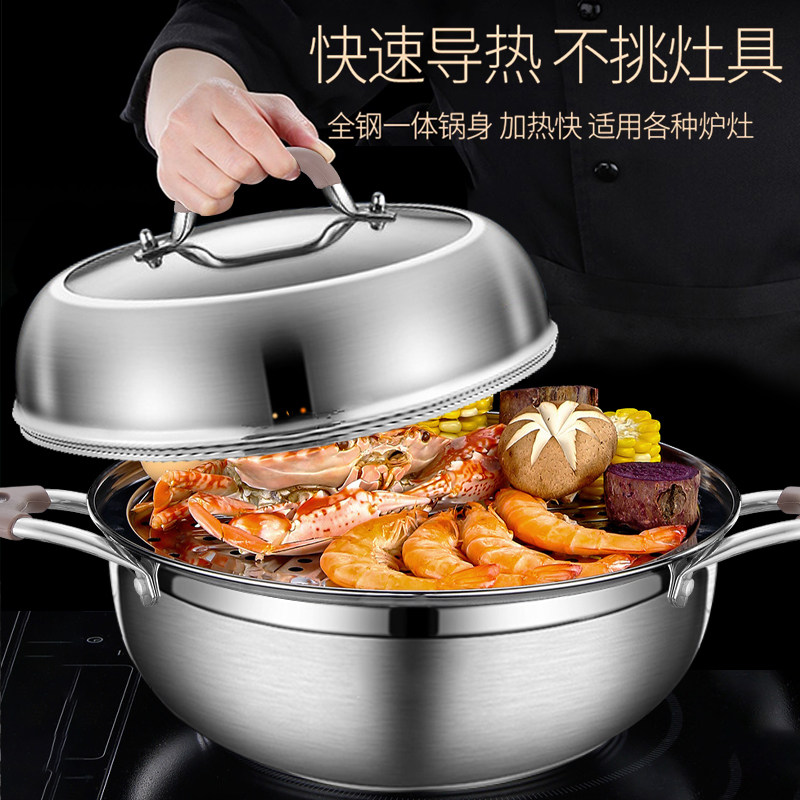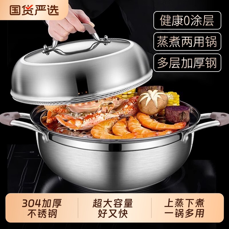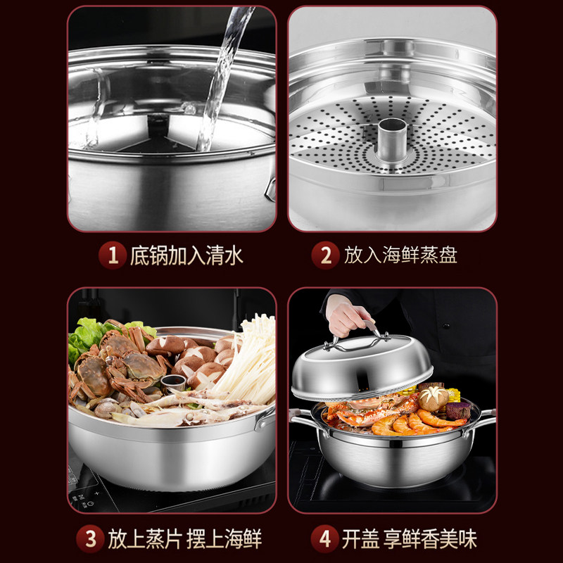 赫巴兹蒸锅家用蒸汽锅食品级304不锈钢蒸海鲜电磁炉燃气灶专用