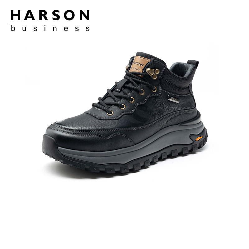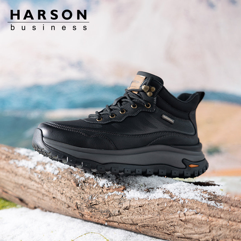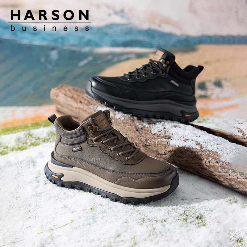 哈森男鞋冬季加绒皮鞋加厚保暖爸爸皮靴男士户外厚底高帮休闲棉鞋