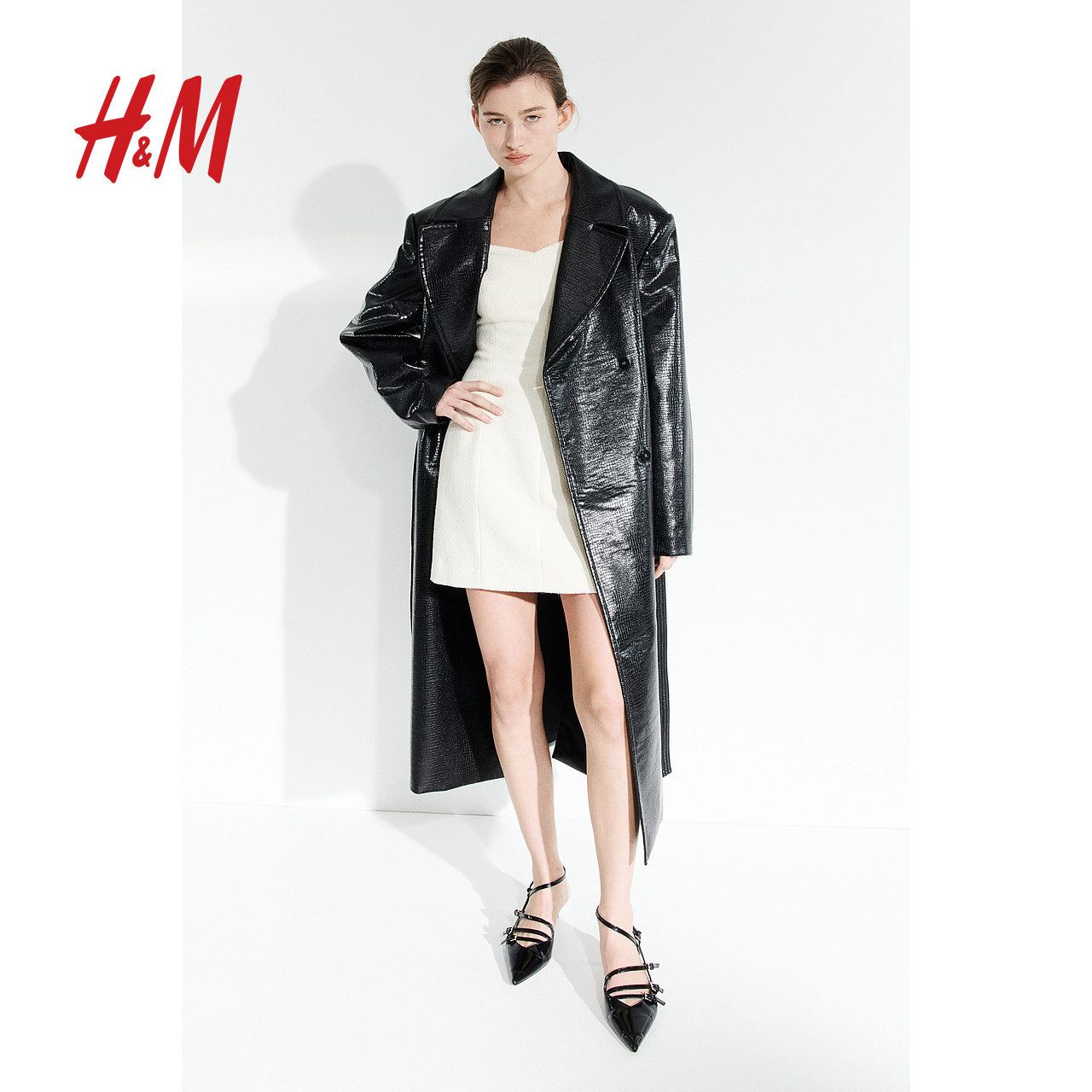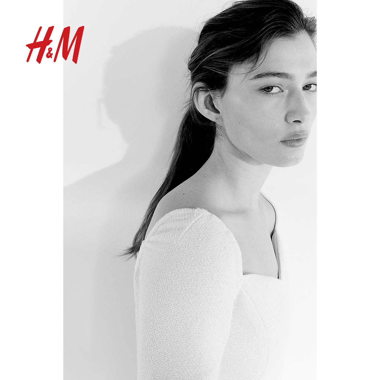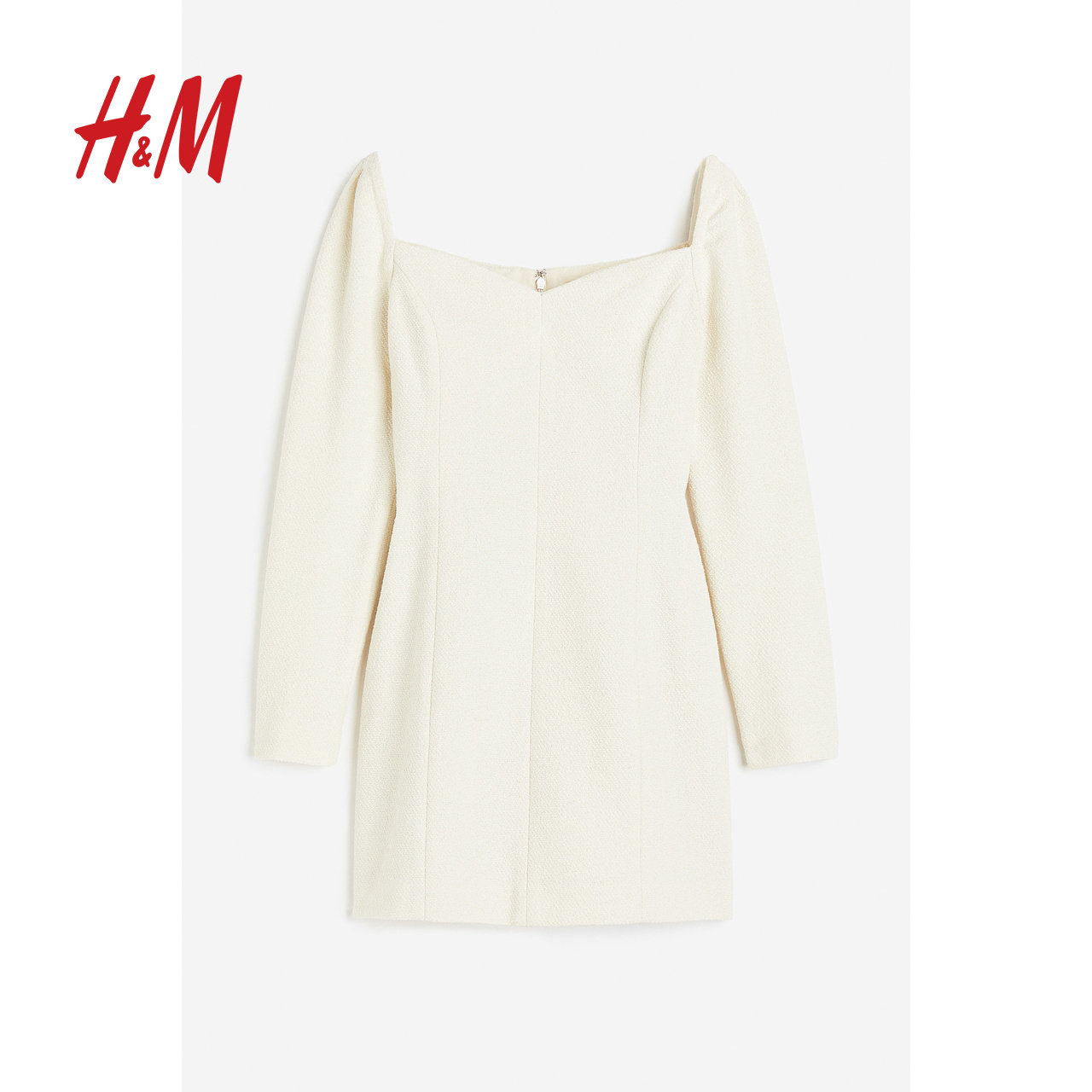 HM女装连衣裙冬季圈绒梭织温柔桃心领长袖短裙1207698