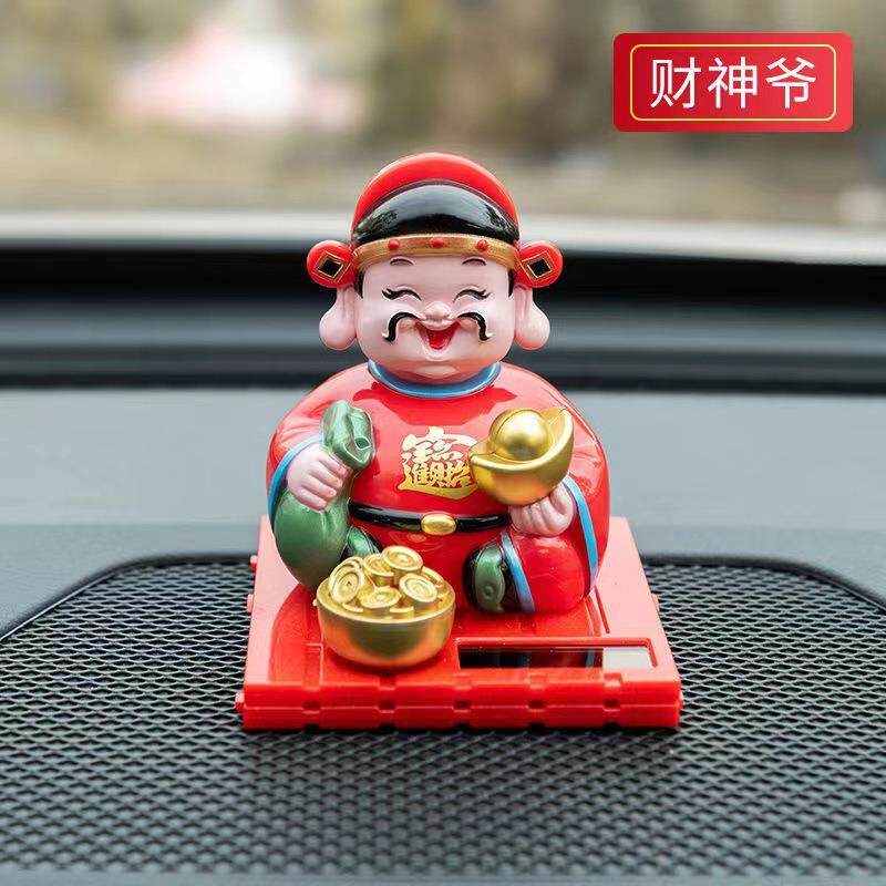 太阳能财神汽车摆件摇头财神车内装饰品点头财神爷家居招财摆件