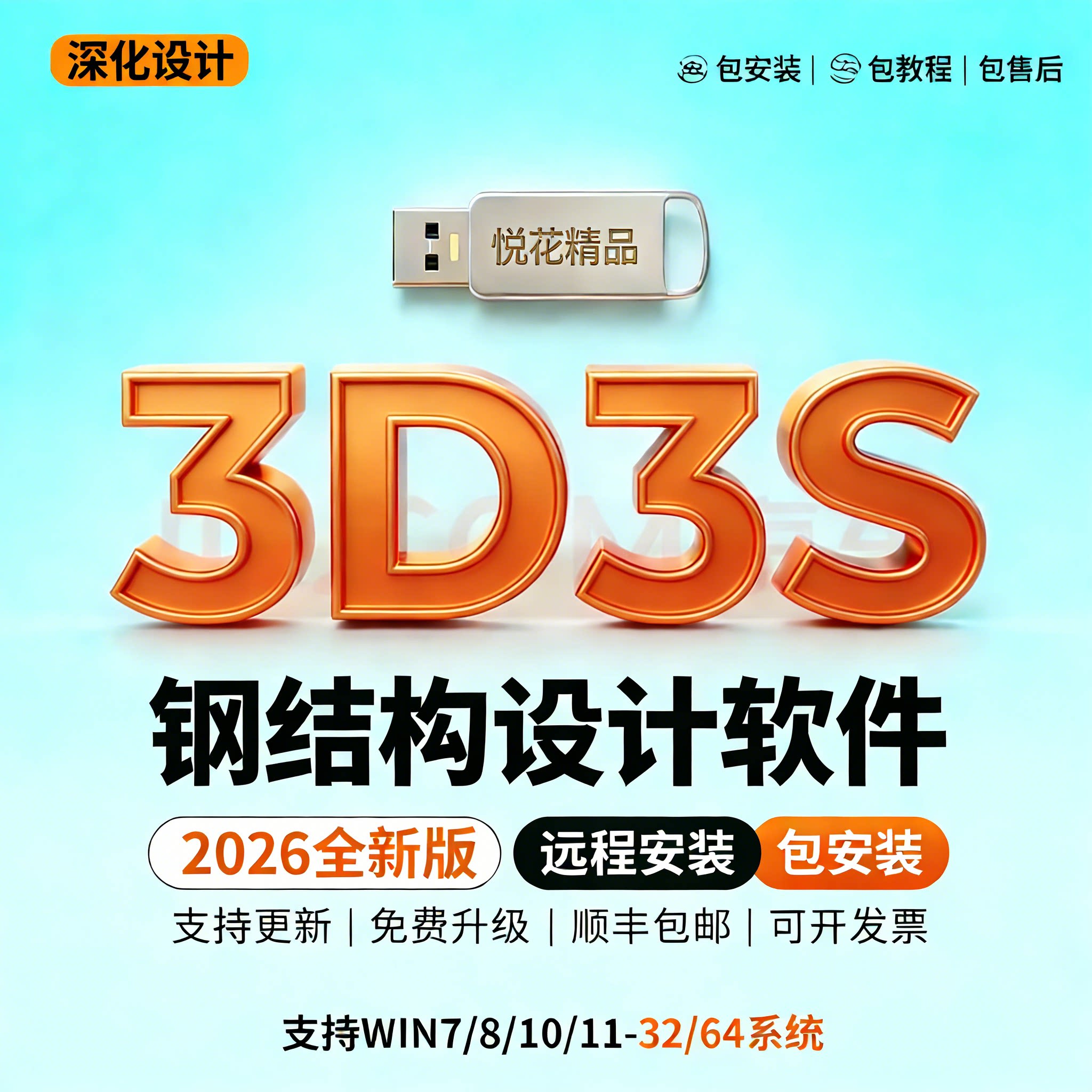 2026新版3d3s钢结构设计软件3d3s加密锁软件安装2026建筑钢结构设计软件光伏Design2024远程安装送教程一锁通