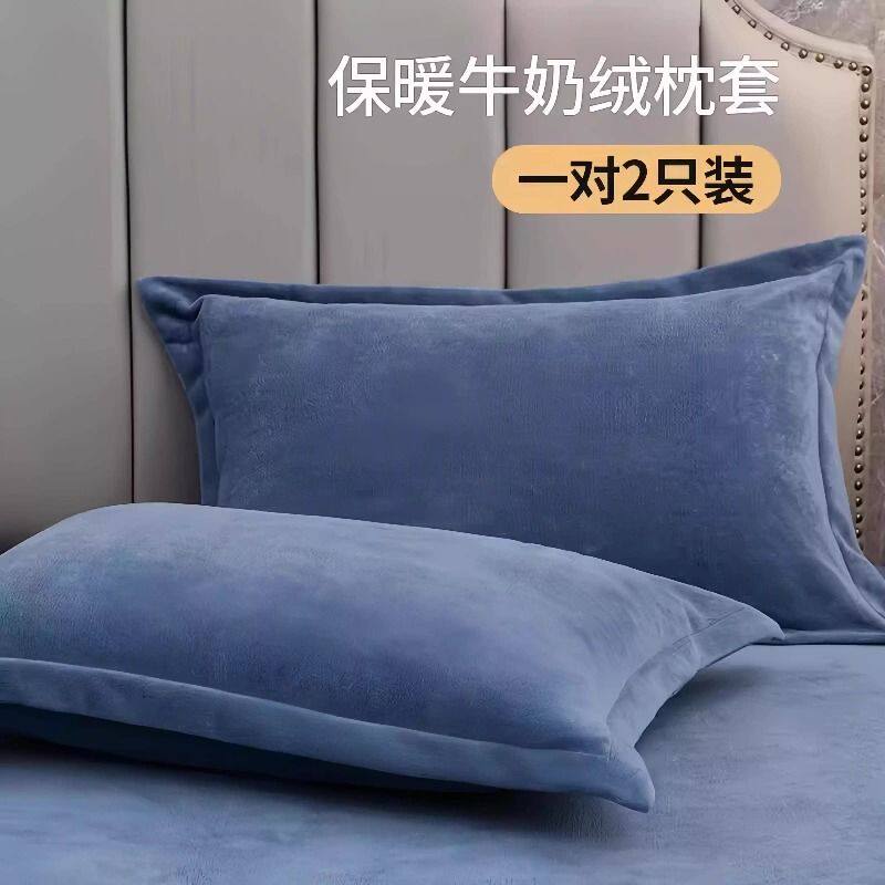 牛奶绒枕套一对装秋季专用珊瑚绒枕巾单人枕头家用单个枕芯套加厚