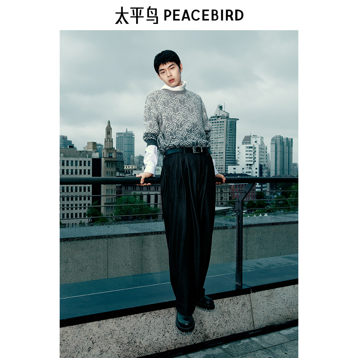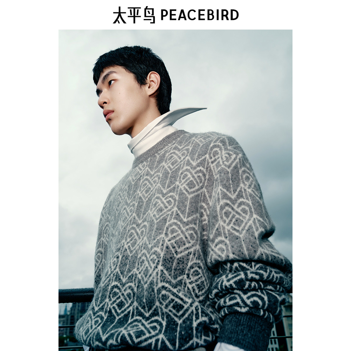 森马毛衫男冬季满版提花针织衫撞色毛衣宽松套头衫百搭提花潮-TK
