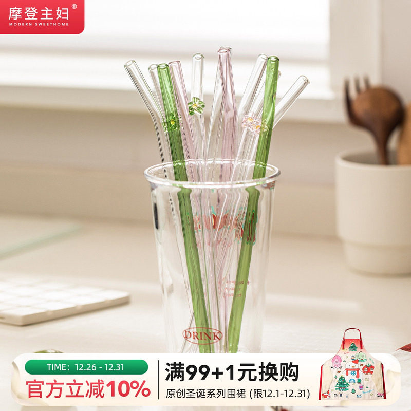 摩登主妇可爱玻璃吸管食品级弯曲耐高温杯子水杯玻璃杯咖啡杯吸管