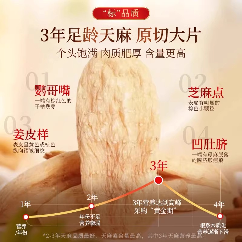 云南天麻新鲜干货非野生特级官方旗舰店搭当归鹿筋片中药材正品