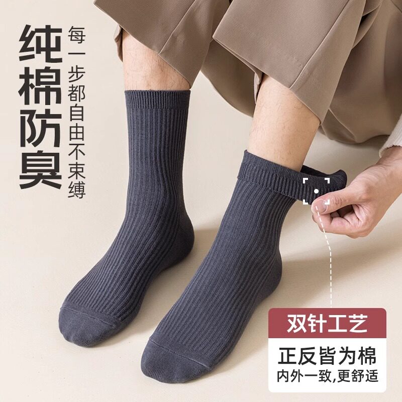 新疆棉袜子男款秋冬纯棉防臭中筒袜保暖运动吸汗春秋商务男士长袜
