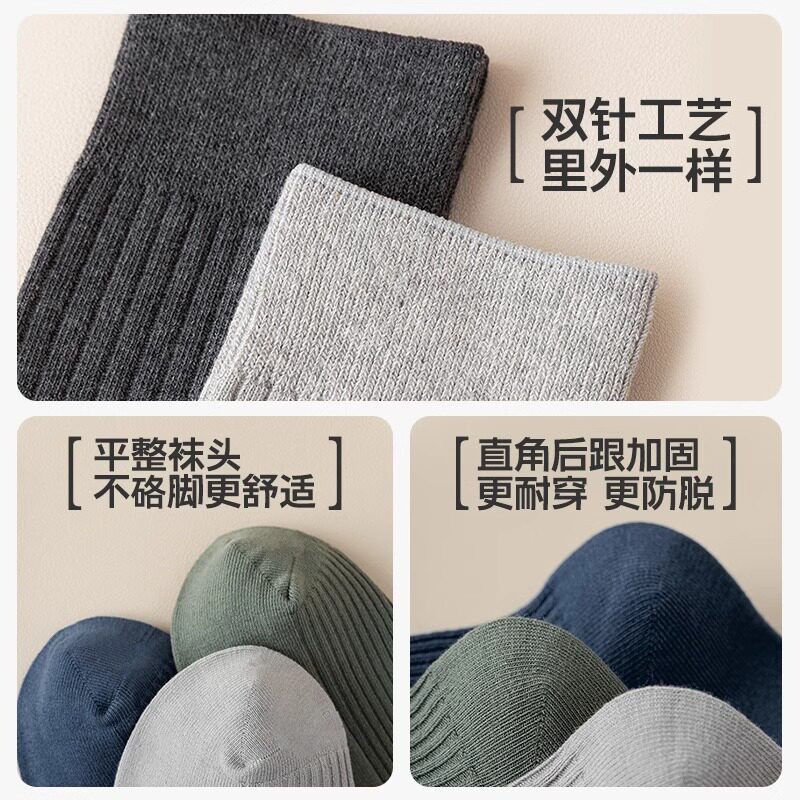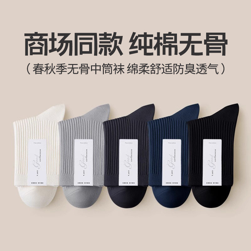 男士袜子商务抗菌中筒袜秋冬运动吸汗防臭经典黑白灰纯色中筒袜子
