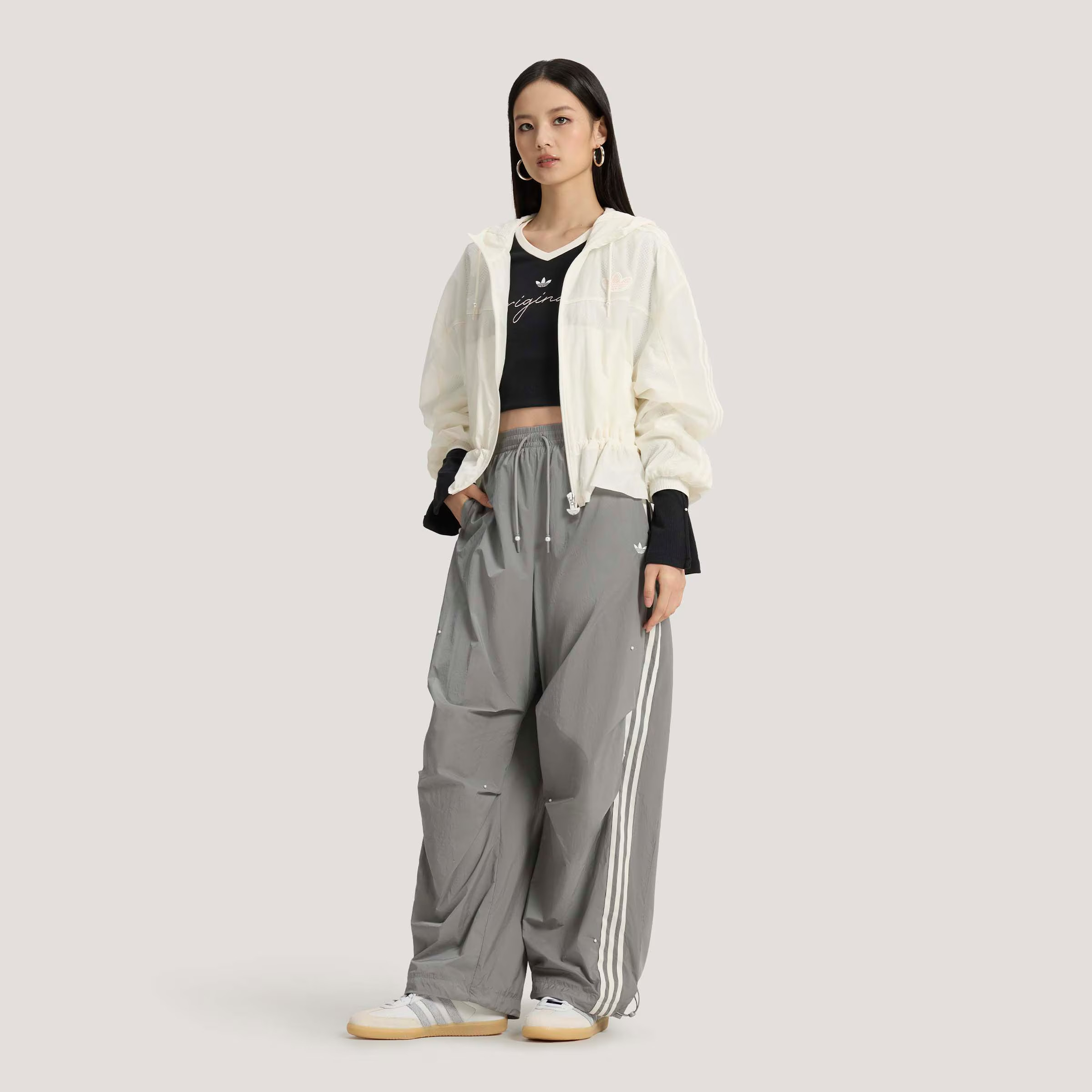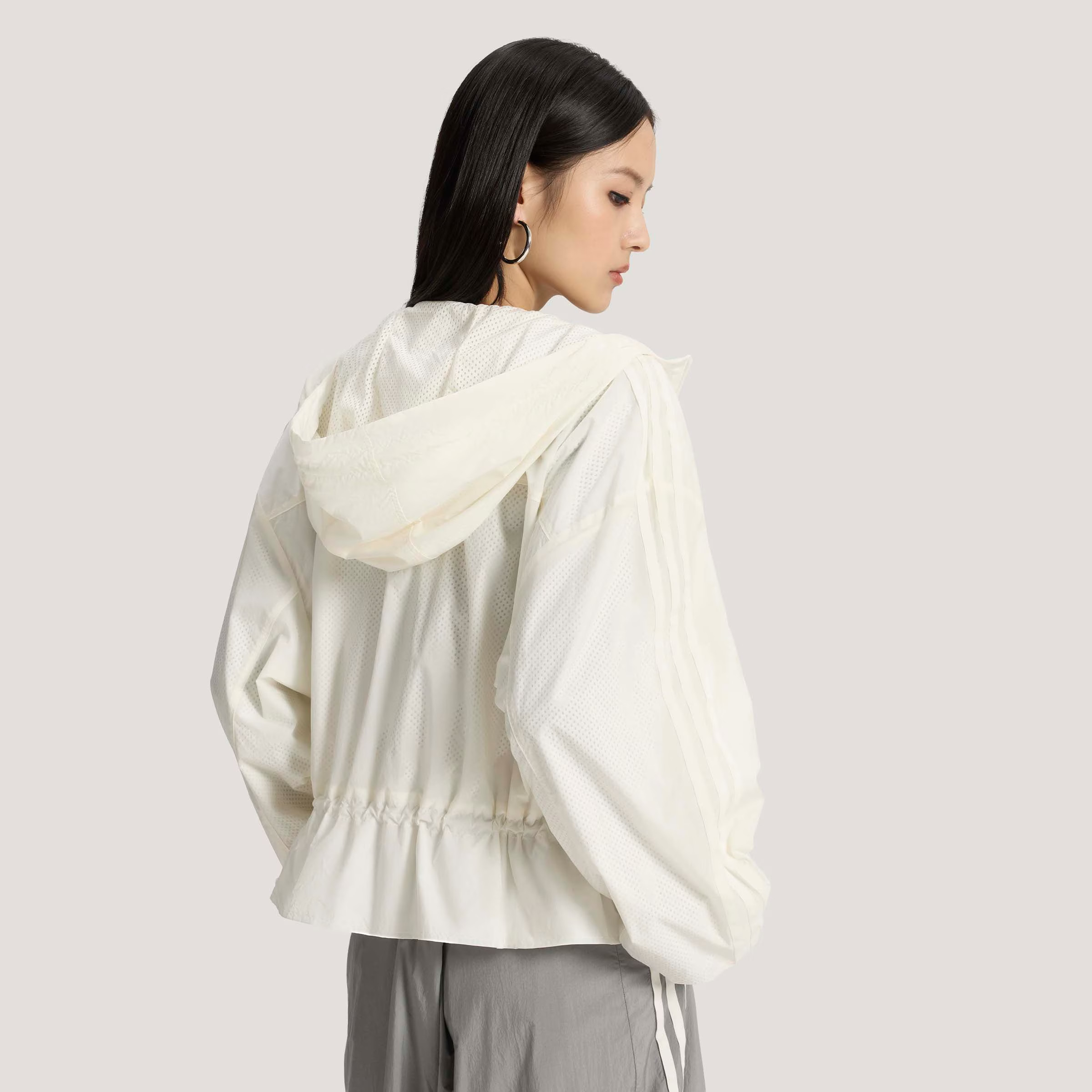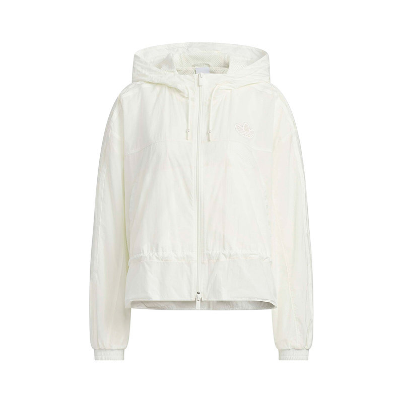 adidas阿迪达斯三叶草连帽夹克2026春女宽松白色风衣外套 KS2875
