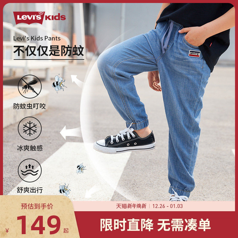 李维斯童装男童牛仔裤薄款2025夏季新款防蚊裤春秋中大童儿童裤子