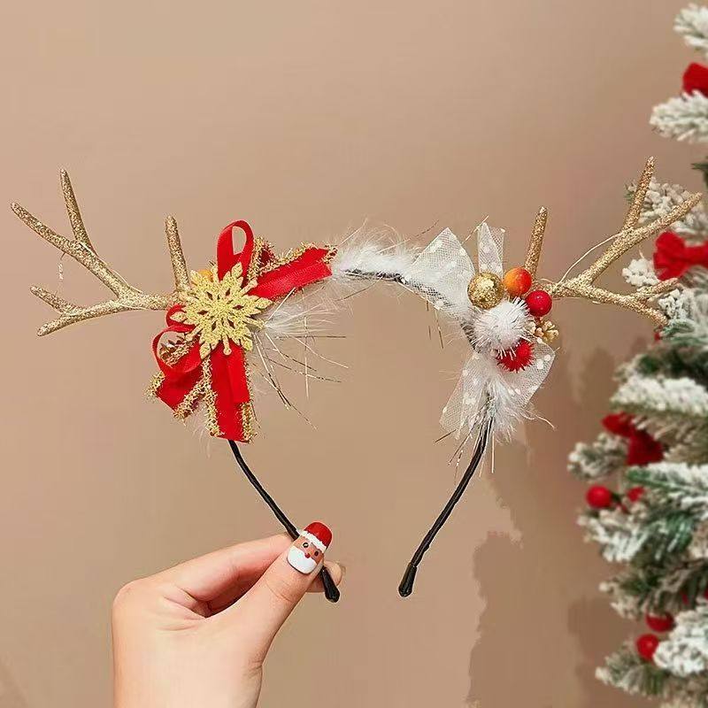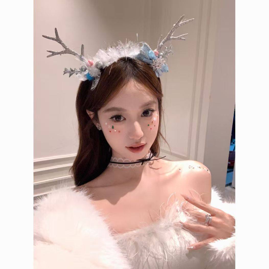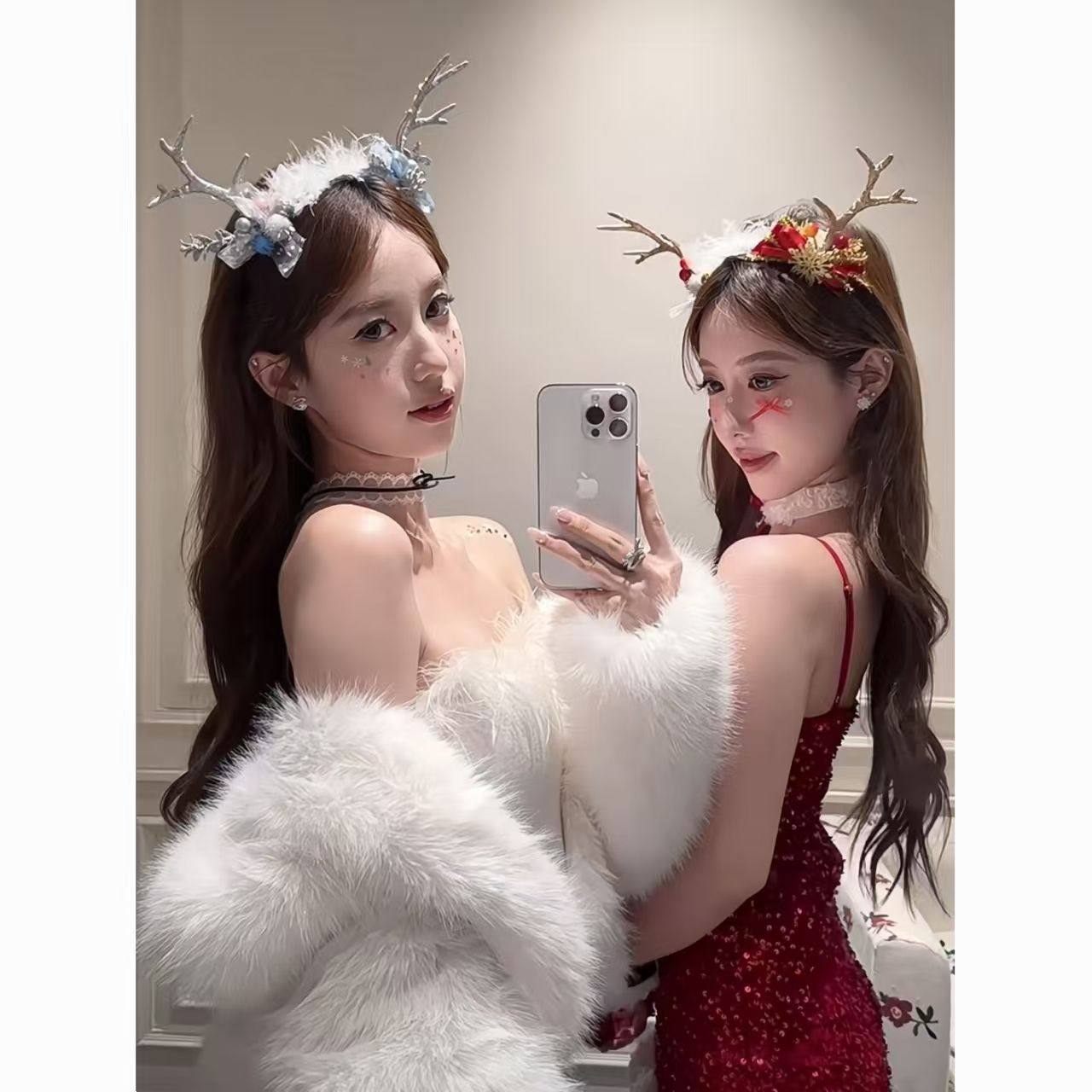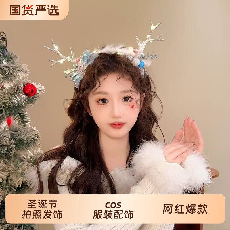 圣诞节拍照氛围羽毛鹿角发箍头饰女cos配饰发饰2025年新发光蝴蝶
